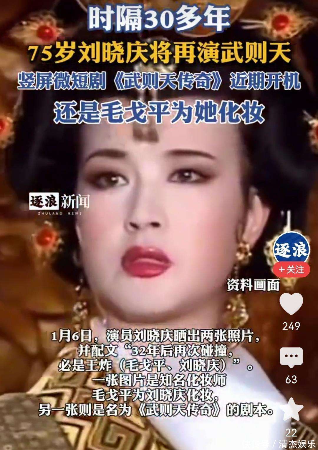 刷到刘晓庆宣布将再次出演《武则天》,而且是第五次扮演这个角色时,我有点愣住了。她已经75岁了,按理说到了这个年纪,别人应该是安享晚年,陪伴家人了。但她不一样,她不仅没有停下来,反而再次与老搭档毛戈平携手,进军微短剧领域。她还大胆地说,32年后再次碰撞,必是王炸,一语间就让话题的热度飙升到亿级。我们不禁要问,这真的是因为情怀的推动,还是这位老戏骨想在新的赛道上再创造一段传奇?