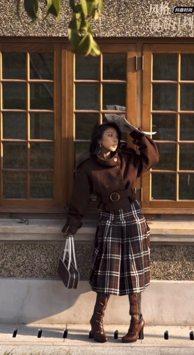 另一位创作者 @ChiliCharlotte,选择在午后暖阳中漫步,以灵动随性的姿态 360 度呈现穿搭细节。她将造型自然融入街区生活,生动展示了一套兼具质感与松弛感的日常秋冬搭配,仿佛从经典秋冬英伦画报中走入现实生活的时尚切片。