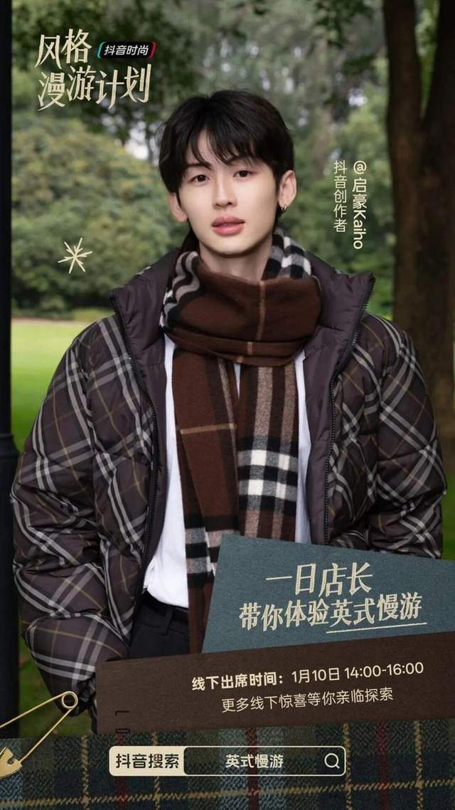 活动现场,几十位抖音时尚创作者展示了不同灵感方向的英伦风搭配,从情侣变装到日常通勤,他们用格纹围巾、全新外套系列与手袋等代表单品打造了属于 Burberry 的冬日风格簿。此外,抖音创作者 @启豪 Kaiho 和 @杨耿俊_ 担任 “一日店长” 深度参与场景互动,他们以不同的搭配穿梭于各个陈列空间之间,将 Burberry 的品牌调性与 “风格漫游计划” 的场景化趋势理念相融合,既完成了品牌文化的深度种草,也让英伦风格从遥远的秀场美学,转化为人人可感、可践行的穿搭提案。