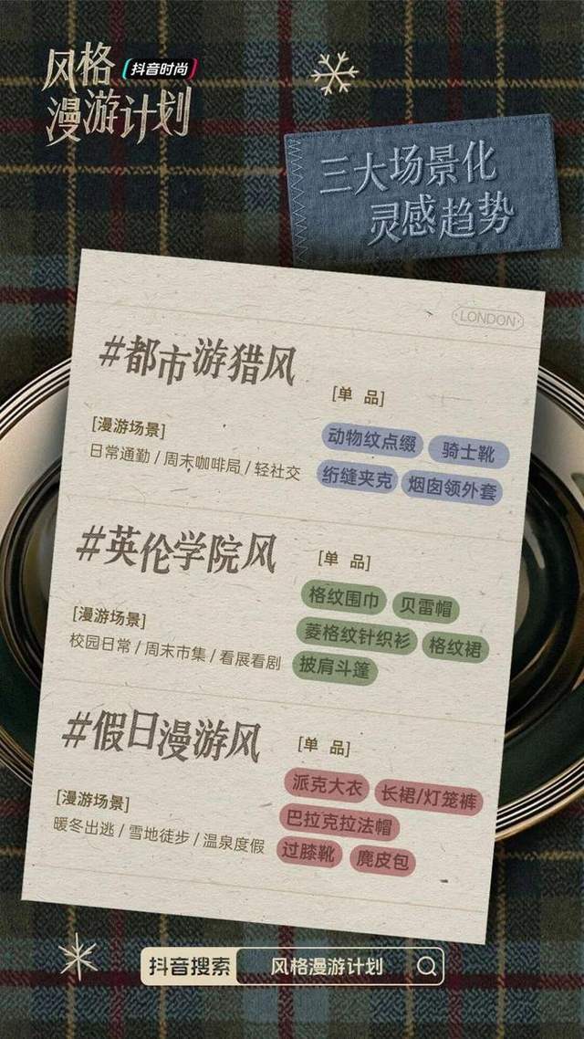 近期,抖音时尚推出的 “风格漫游计划” 可以被视为对这一转变的具体回应。这一计划通过、、 三大话题标签,聚焦通勤、校园与户外场景,每个话题均为用户提供了具体的情境、搭配公式乃至详细的单品指导。