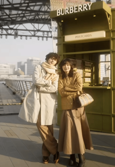 不止于线上,Burberry 还携手抖音时尚在 1 月 8 日至 11 日期间于上海西岸梦中心同步打造线下限时体验空间。现场的票务亭、咖啡亭、围巾车与格纹灯等装置错落排布,共同营造出极具代入感的 “沉浸式英伦场景”,将 Burberry 的经典格纹、风衣等文化符号自然融入空间设计,让 “英式慢游” 的核心精神从视觉层面完成具象化落地,为后续互动体验奠定主题基调。