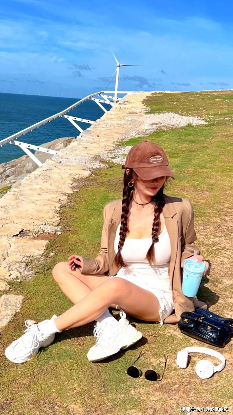 配饰更是把酷飒拉满:棕色棒球帽压着麻花辫,街头感十足;白色头戴耳机挂在颈间,与白装呼应的同时添了几分潮酷;白色老爹鞋踩在脚下,厚底增高还能踩沙滩、走礁石,实用性与时尚感拉满。