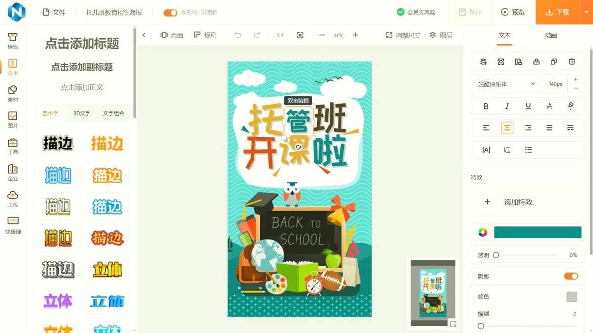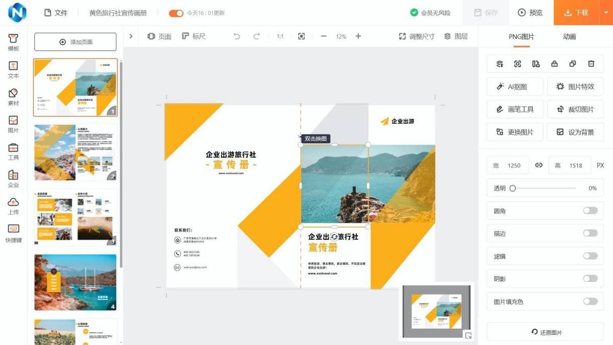 - 海量维度表现:拥有10万+模板资源,配套海量免费图片、图标、字体等素材,品类覆盖电商、餐饮、教育、金融等全行业创作场景。素材库持续更新,节日热点、季节主题等时效性素材能快速跟进,无需跨平台寻找补充资源。