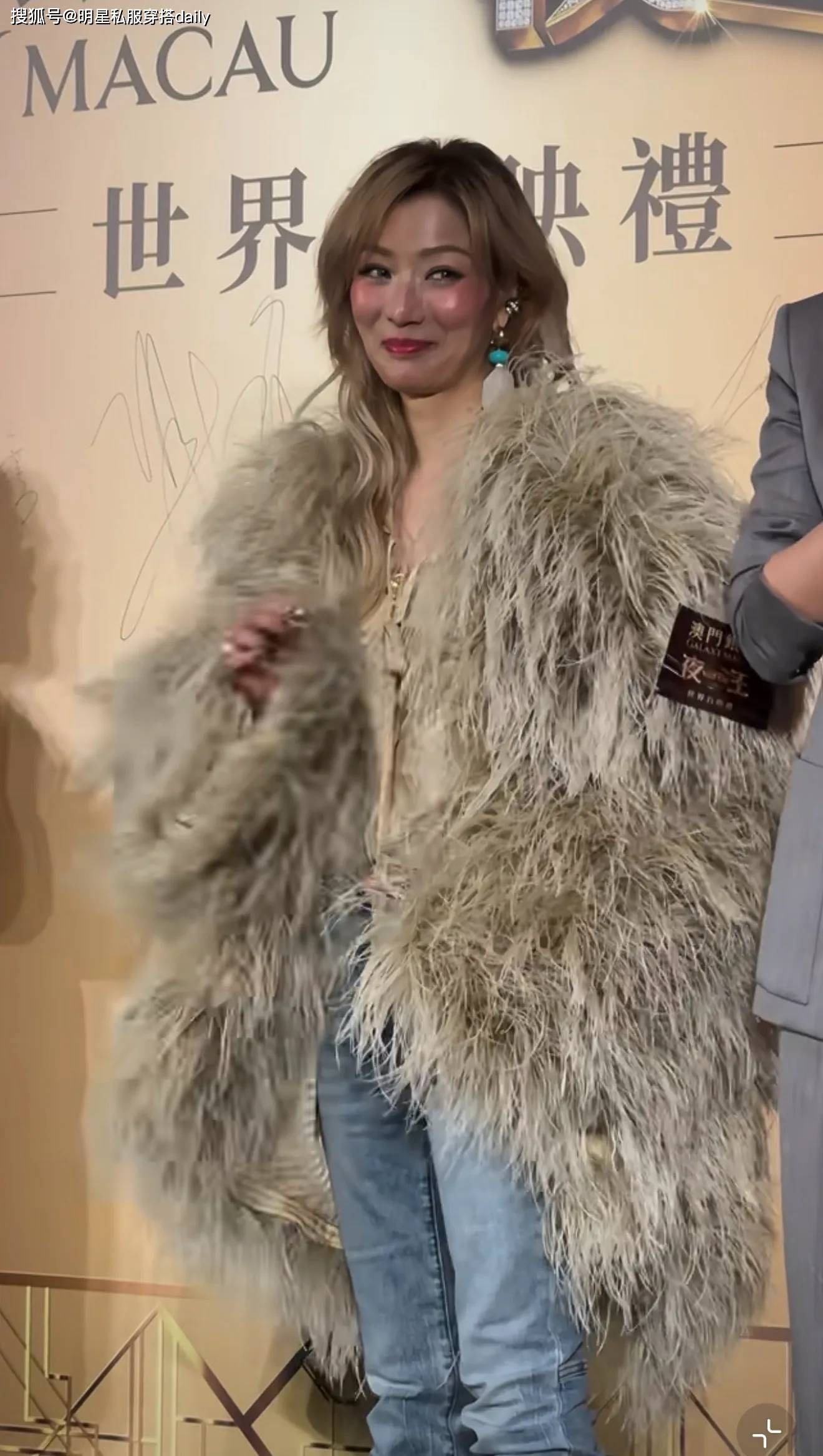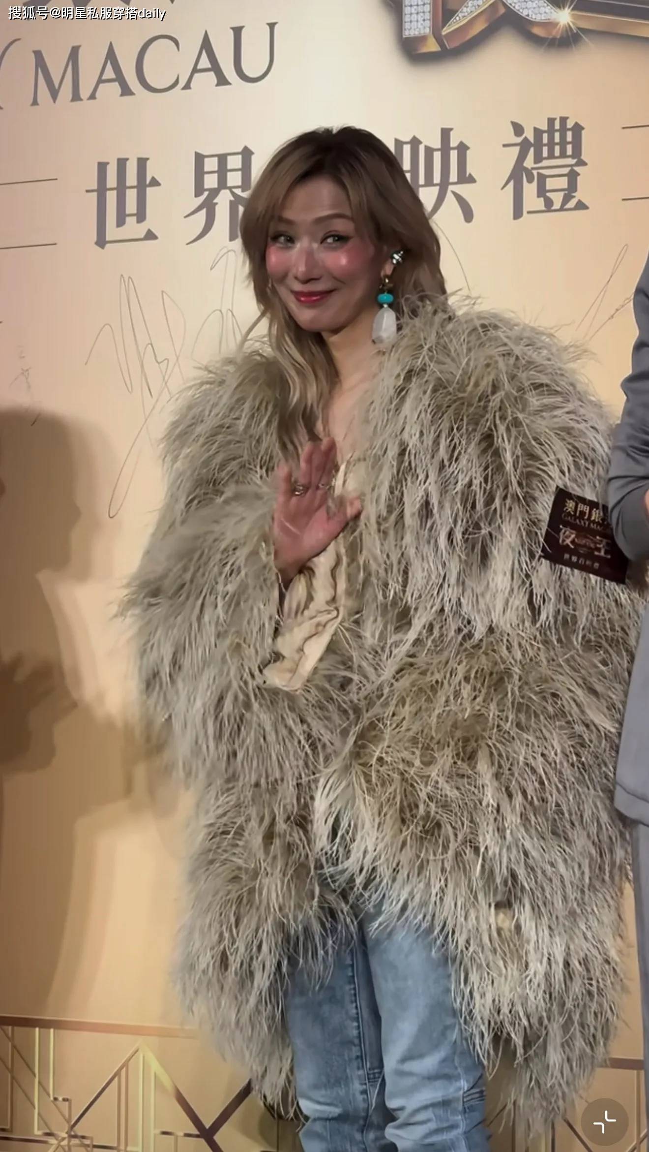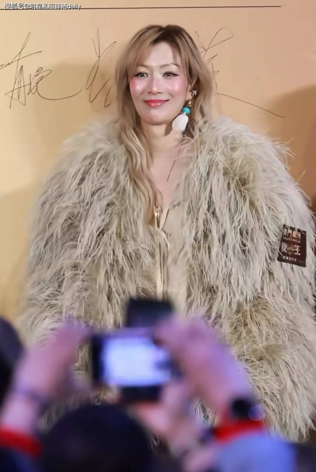 53岁郑秀文金发搭皮草穿出轻盈感!