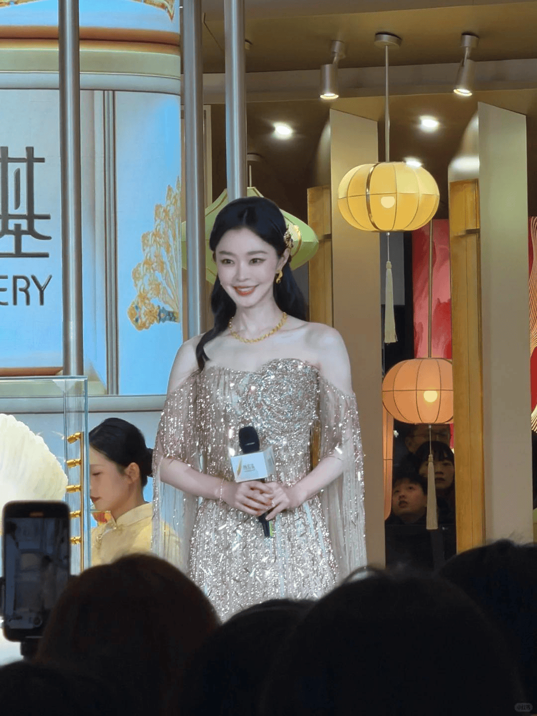 那天在万象城,她除了亮相,还安静看了会儿非遗展品。有粉丝远远拍到她俯身细看花丝首饰的侧影,眼神专注,没注意到镜头。那一刻她不像明星,倒像逛展的普通游客,只是恰好穿了条很美的裙子。