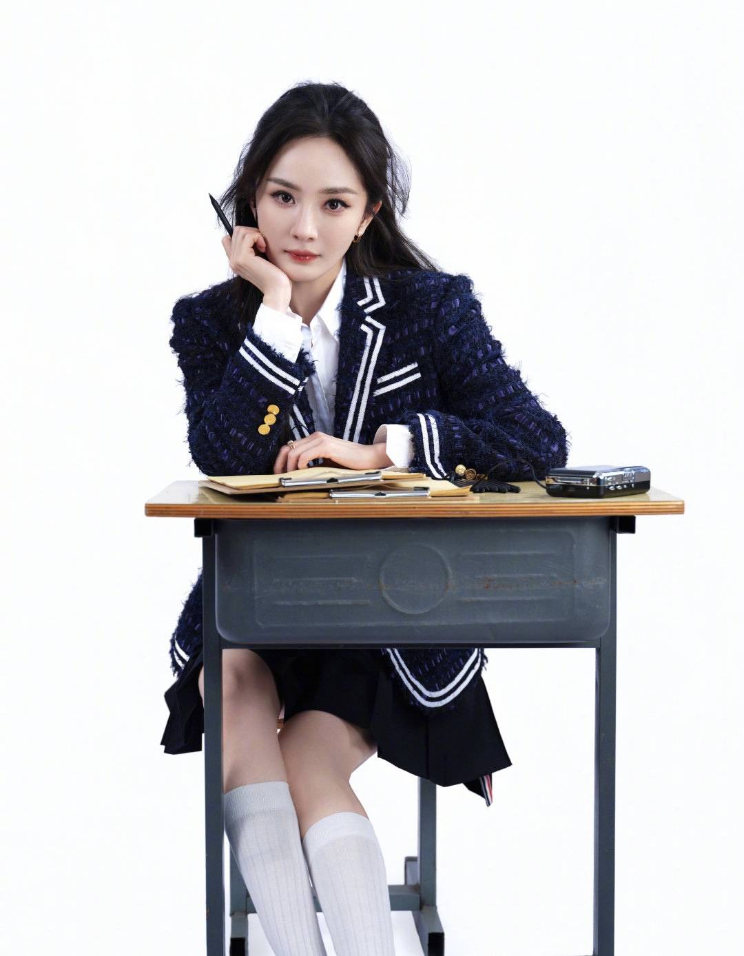 要说这造型的“灵魂”,那必须是那双白色高筒袜。别人穿可能像小学生,杨幂一上脚,直接把腿型修饰得又直又细。再加上低饱和度的“清冷高智学姐妆”,整个人又纯又飒,完全看不出已经快40岁。现场照片一出,网友都惊了:“这哪是39岁,分明是18岁刚入学的北电新生!”还有人翻出她早年在北电的照片对比,感叹“岁月在她身上是静止的”,这冻龄状态,真是让人羡慕不来。