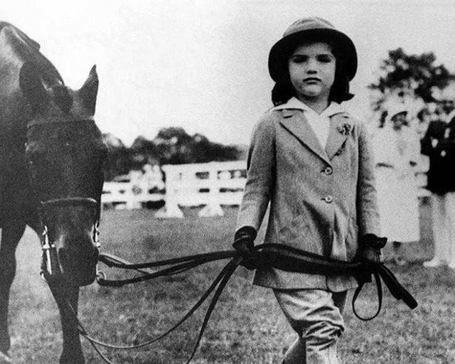 杰奎琳的母亲杰奈特·诺顿·李是一个爱尔兰裔女性,身材苗条,酷爱马术,曾在奥运会上获得过马术冠军。杰奎琳的外貌更像父亲约翰·沃努·布维尔,脸型偏圆,眼距较大。年仅一岁时,杰奎琳便被母亲扶上马背,等到妹妹李出生时,杰奎琳已经骑马相当熟练。