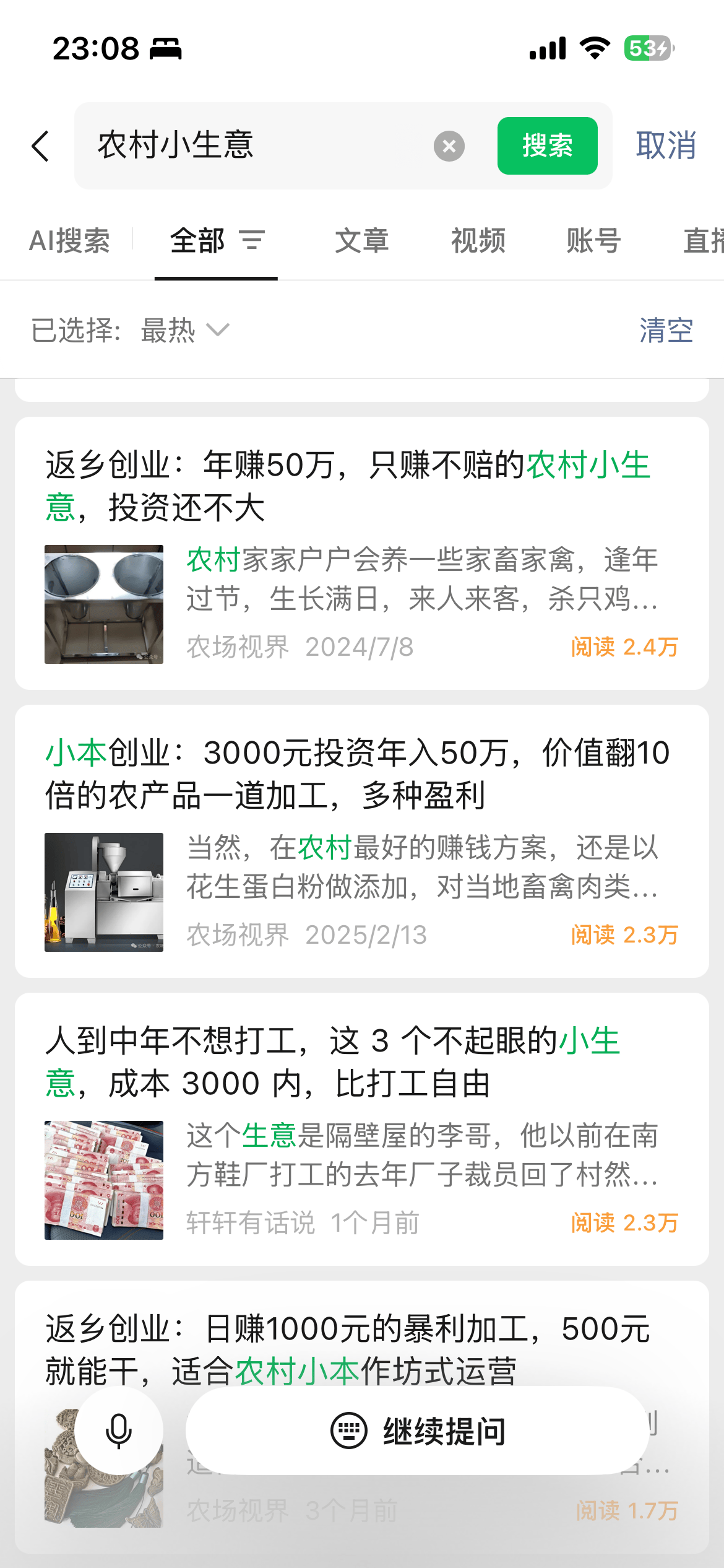 刚开始做公众号那会儿,我跟风写那种农村小生意类的内容。就是什么“适合农村的8个暴利项目""回老家做这5个生意不比打工差"之类的。