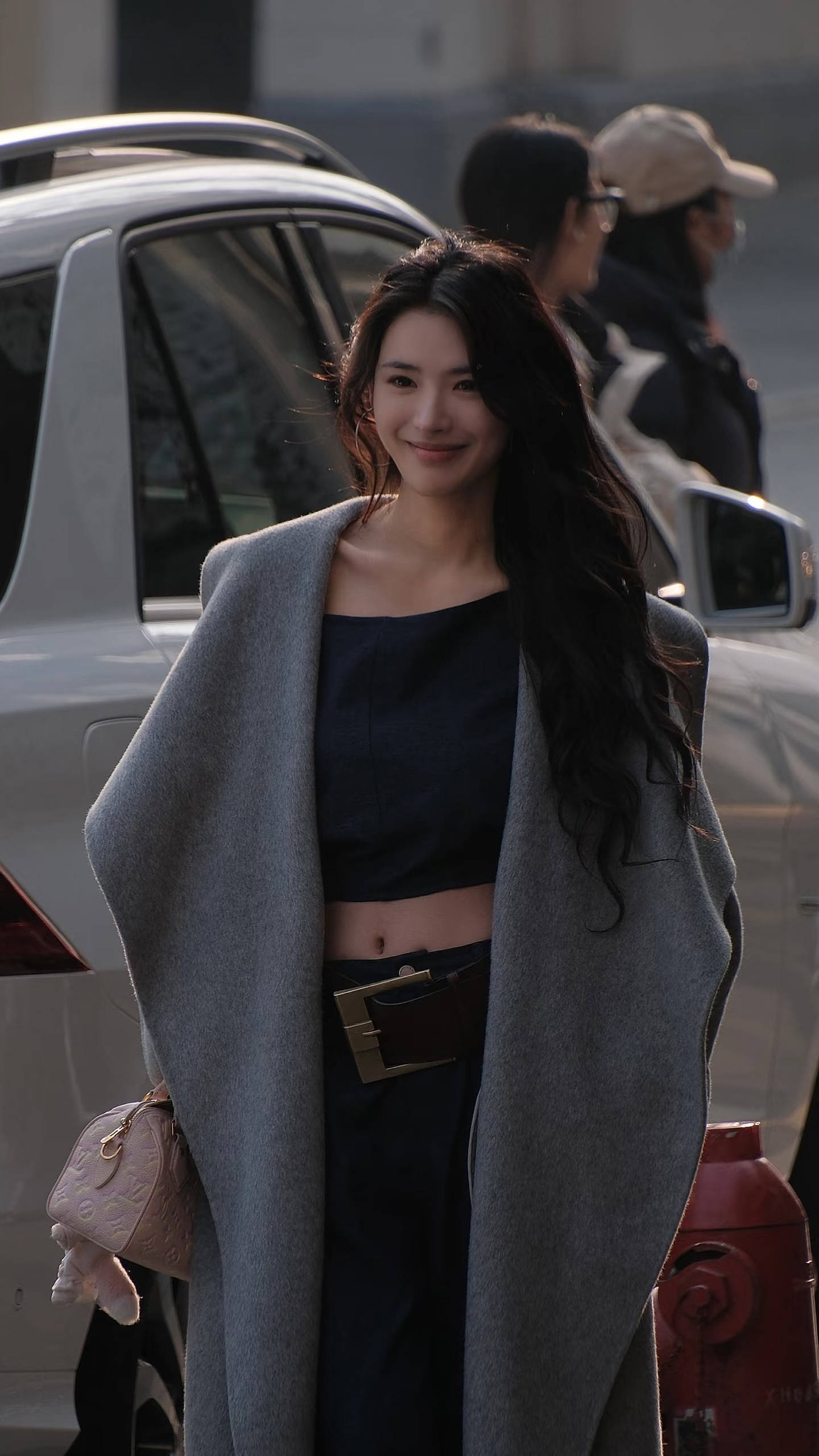 大衣讲究的是“型”,除了版型问题,面料是重点。尽量选择羊绒、羊毛或是皮革材质的大衣,版型挺括立体,还能最大化的修饰身材体型。