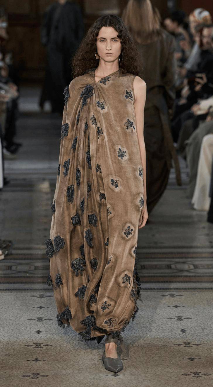 UMA WANG 则代表了一种更内敛而艺术化的审美路线。作为首位进入米兰时装周官方日程的中国设计师品牌,UMA WANG 有着代表性的风化质感面料与温暖中性色调,在整体线条、面料处理与东西融合方面具有高度辨识度,常常将中式传统织造理念与欧洲剪裁工艺结合,形成一种介于东方静美与西方优雅之间的诗性表达。