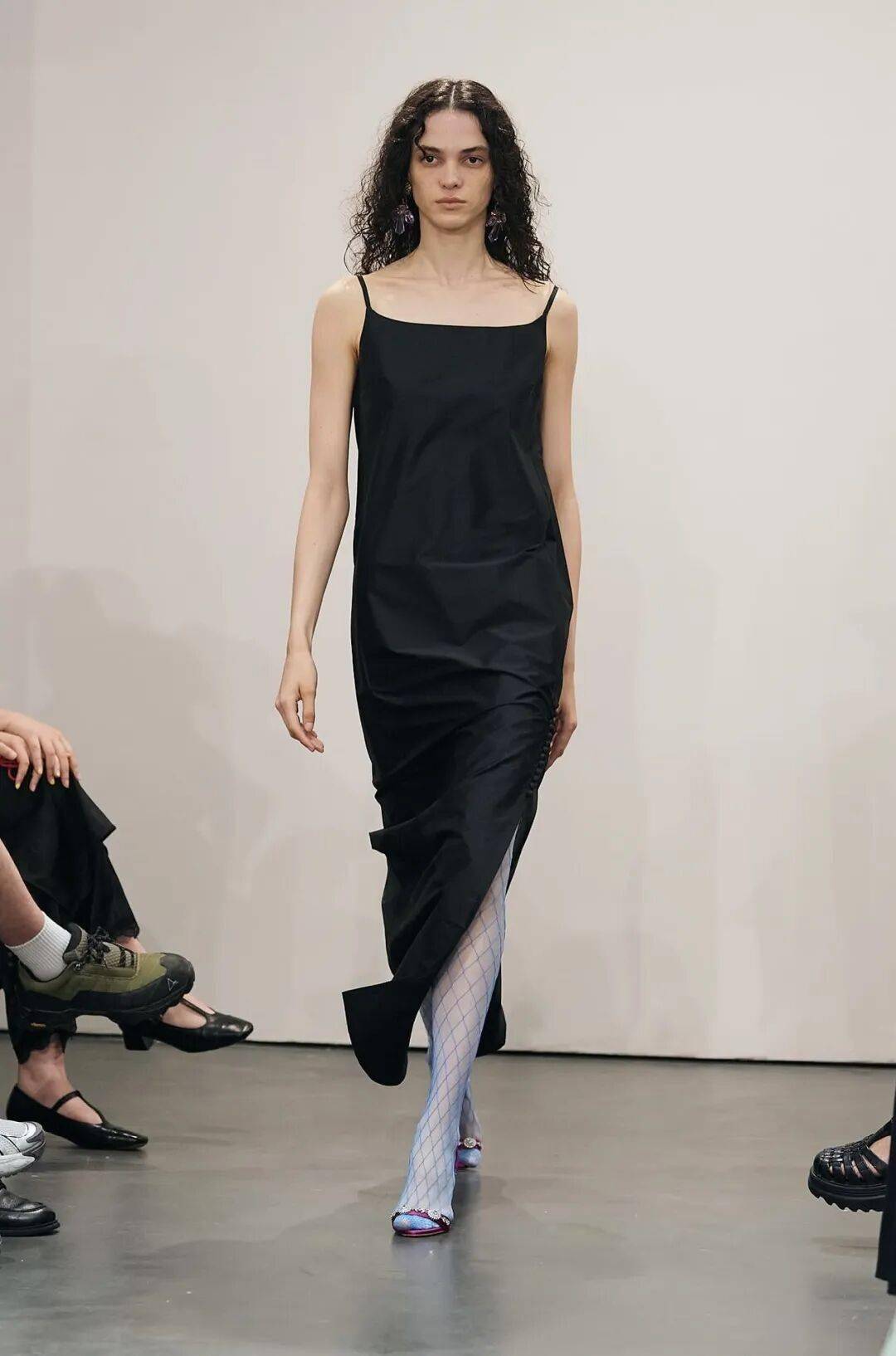 “绿漾”印花为盛夏注入清新气息,青绿底色与白色花形轮廓交织,提花面料层层起伏,如水面微澜,在视觉与触感之间形成温润的节奏感。“乌丝黑”Yi Dress 小黑裙则呈现出一种极具当代精神的克制之美。一气呵成的版型结构构建出冷静而清晰的轮廓秩序,高开衩处的包扣细节,在简约中保留精致张力,使现代感不显锋利,却自带力量。