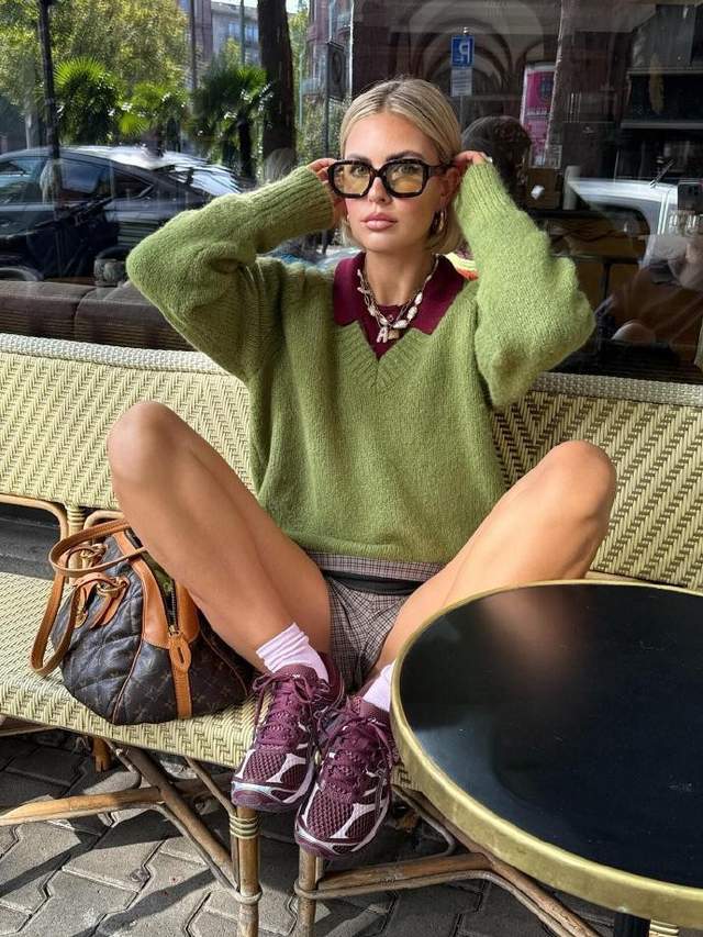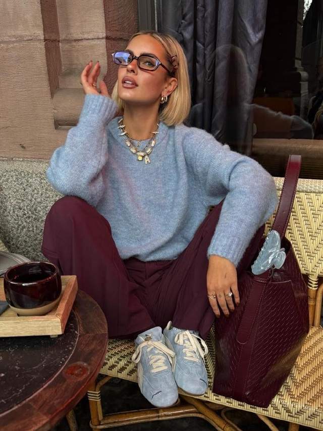 Julia.kammerer 的彩色穿搭之所以不显得浮夸,关键在于她对色彩搭配的精准拿捏与对单品版型的巧妙选择。她深谙 “冷暖平衡” 的搭配法则,用宝蓝色丝绒连衣裙搭配深灰色羊毛外套,冷调的明艳与中性色的沉稳相互中和,既保留了色彩的张力,又不失秋冬的质感;或是用浅紫色针织打底叠穿焦糖色皮质马甲,温柔与酷飒碰撞出独特的层次感,让色彩不再是单一的点缀,而是造型的灵魂。在版型上,她偏爱宽松有度的剪裁,oversize 的彩色卫衣搭配紧身牛仔裤,或是收腰款的彩色呢子大衣搭配直筒半裙,通过廓形的对比避免色彩过于张扬,让整体造型既时髦又耐看,轻松适配通勤、约会等多种场景。