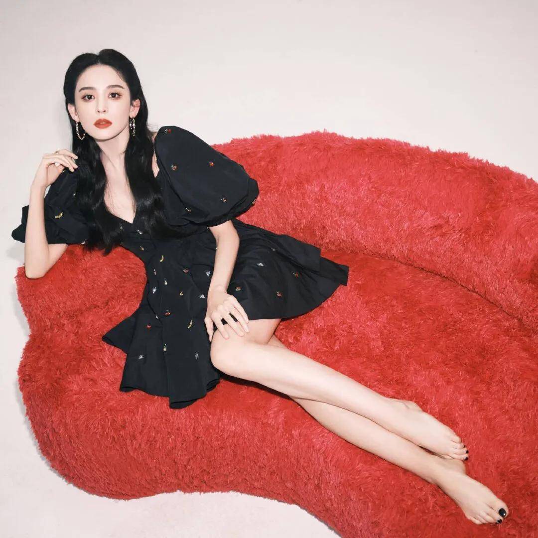 黑色超短裙更是把古力娜扎的大长腿展示出来,再涂上黑色指甲油的裸足,在整体黑白对比下,更是呈现性感又成熟的女人味,