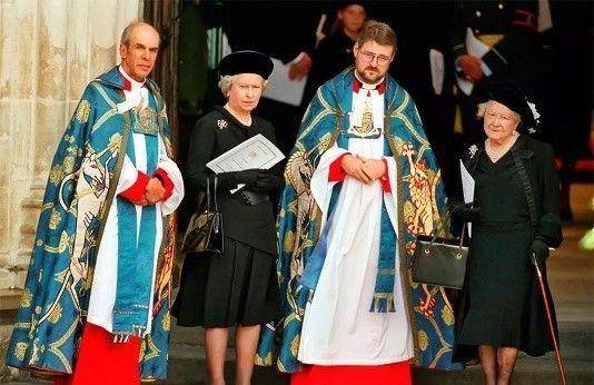 戴安娜的灵柩于伦敦时间9点零8分启程,前往威斯敏斯特大教堂。她的灵车上,放着白玫瑰、百合和康乃馨,12名威尔士御林军则负责护卫。即使是永远飘扬的王室旗帜也在这时降下半旗,以表示对她的悼念。女王特意穿上黑衣,站在人群中,肃穆而庄重。当戴安娜的灵柩经过时,女王低下了头,目送她远去。这一低头,令所有在场的人都感到震撼,既是内疚的流露,也是一种对她的尊敬。