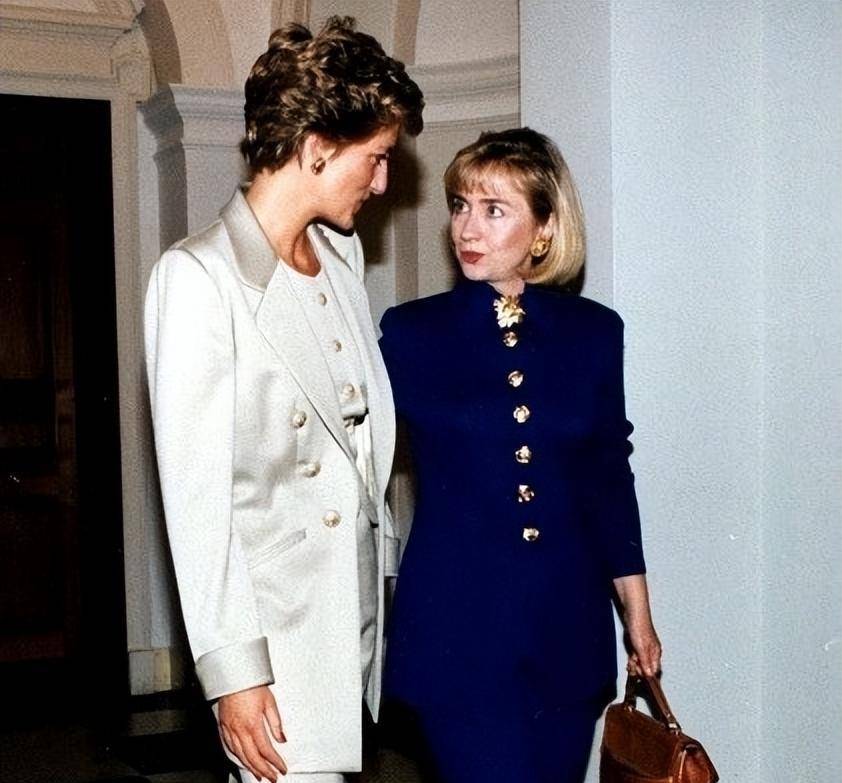 在这方面,戴安娜王妃似乎还需要向女王学习。尽管戴安娜一直被誉为最美的王妃,然而当她站在真正拥有内在实力的女人面前时,她的气场明显显得有些薄弱。1994年,戴安娜与希拉里·克林顿同框时,尽管戴安娜身上的王室光环依旧耀眼,但因婚姻的困扰,她整个人显得疲惫而迷茫,仿佛在自己的内心世界里已经找不到方向。