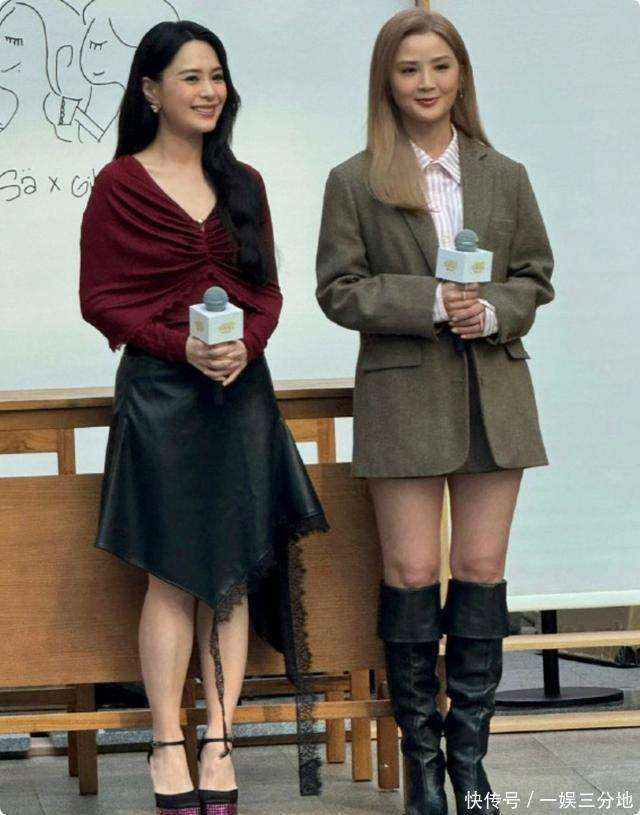 再看看旁边的阿娇,简直就像是逆生长的典范。她穿着一件红黑拼接的短上衣,搭配黑色皮裙,刚刚瘦回巅峰身材,纤细的小蛮腰被完美勾勒出来。唯一的小瑕疵是紧身裙下显现出的小肚子,看来就算是完美的美人,也难逃紧身衣的严苛审视。但这些并未影响她的颜值,镜头拉近,她高挺的鼻梁完美支撑了整个面部轮廓,立体的眉骨自带高光,下颌线清晰如刀刻。45岁的她,皮肤依旧白皙透亮,笑容灿烂,眼尾弯弯,眼神里充满温柔,完全看不出岁月的痕迹。几个月前,她还因为身材发福被网友调侃,而为了这次的合体,阿娇毫不犹豫地狠下心减肥。这份自律让她的皮肤紧紧贴合骨骼,没有一丝松弛,展现出紧致的状态。