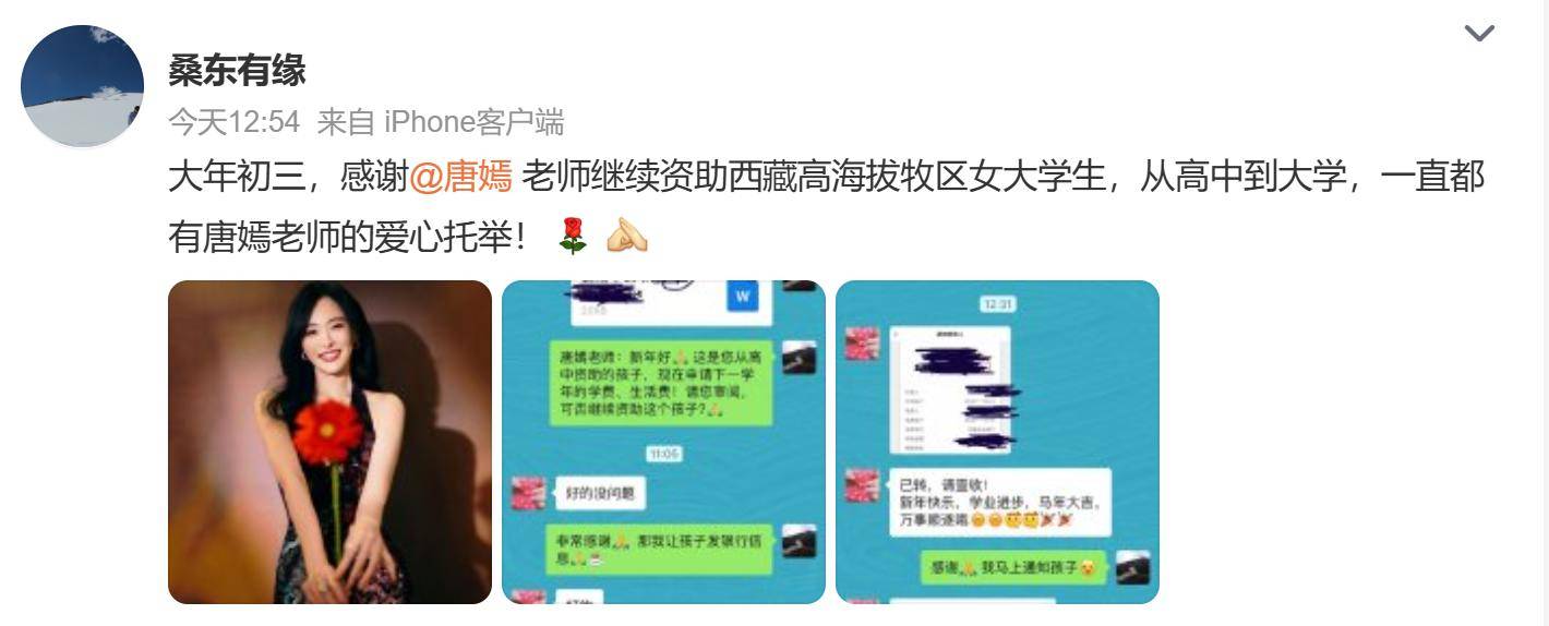 在聊天记录中,这位网友询问唐嫣是否愿意继续资助一位从高中时便开始帮助的藏族女孩,承担她下一学年的学费和生活费。唐嫣没有丝毫犹豫,立即答应了,还温暖地送上了马年的祝福,语气亲切又真诚。谁能想到,这样一句简简单单的回复,背后竟然是一份整整十年的坚守。