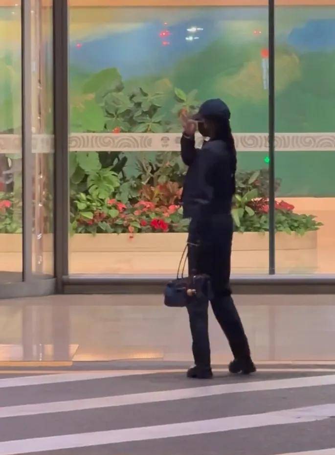 『杨幂』身材苗条纤细,她穿这套丹宁又高又瘦。『杨幂』走路姿势很利落帅气,她一边走一边转身和粉丝们挥手,她人气很高。