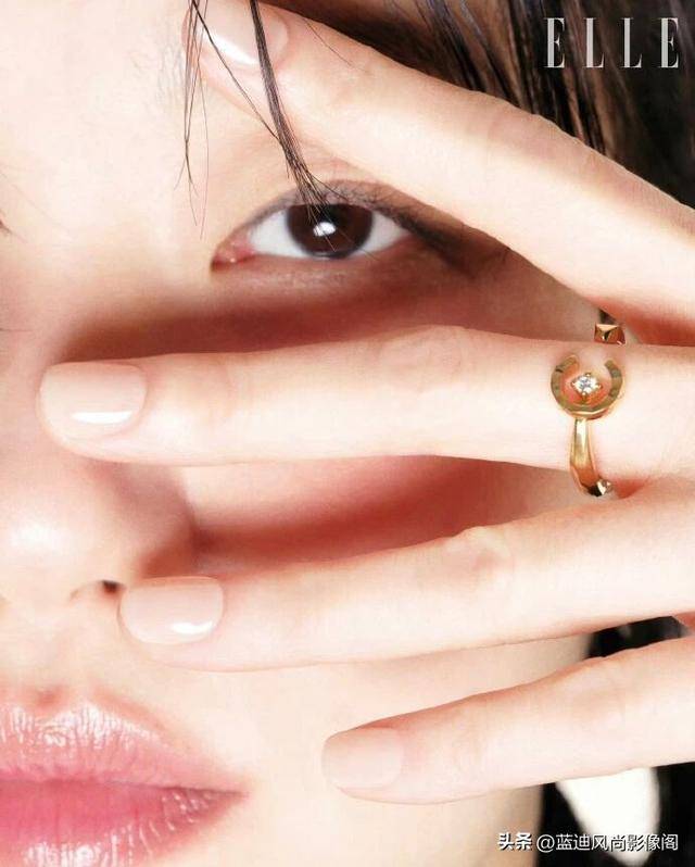 底妆是清透的伪素颜挂,没有追求极致无暇的假面感,反而保留了皮肤原生的细腻肌理,甚至连脸上的自然小雀斑都没有刻意遮盖,在干净的棚拍光线下,干净又通透,自带一种 “不施粉黛” 的原生美感。这种原生感,和香奈儿珠宝的精致奢华形成完美反差,越简单,越高级,越能凸显珠宝的设计感,也越能放大她本身的治愈气质。
