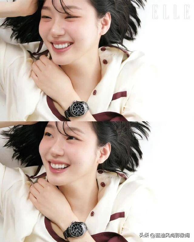 这组大片里,她没有刻意凹 “香奈儿女郎” 的人设,没有硬怼镜头拍珠宝和腕表的 logo,只是松弛地对着镜头笑、托腮、静卧,耳畔的 COCO CRUSH 珠宝、腕间的 J12 腕表,就像她身体的一部分,自然、和谐、不突兀。观众记住的,不只是精致的香奈儿单品,更是那个笑容有感染力、松弛又优雅的金高银。这种人、妆、珠宝、品牌、杂志调性五者合一的状态,才是时尚大片的最高境界。