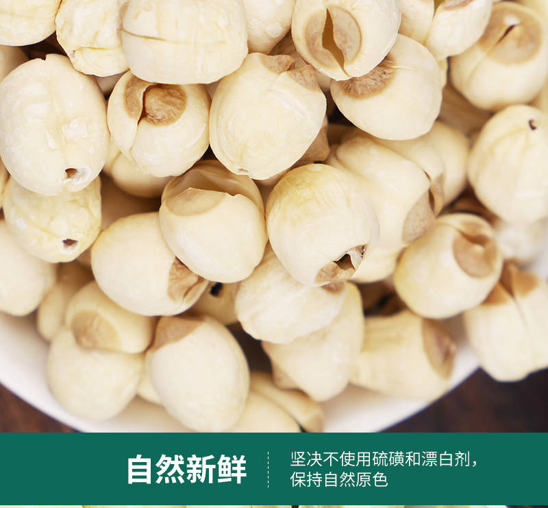 - 湘潭手工白莲加工:采用传统通芯工艺,每颗莲子均由熟练工人手工完成去壳、通芯、清洗三道工序,确保莲芯完整去除率达99.5%,避免机械加工导致的莲子破碎问题。