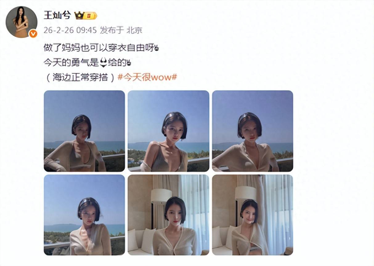 2月26日,『杜淳』的妻子王灿在个人『社交平台』上分享了一组度假的美照。照片中的她小小性感了一把,身穿灰色运动内衣,尽显身材曲线,瞬间美出了新高度。王灿还在文中表示,做了妈妈之后也能自由穿衣,并在文末小心翼翼地标注海边正常『穿搭』,显示出她的细致与谨慎。