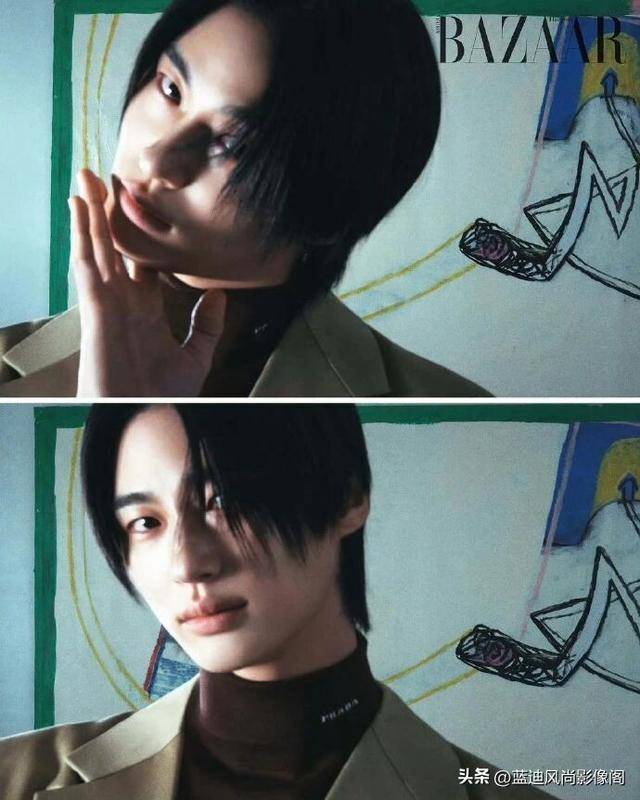 底妆是清透的半哑光挂,没有追求极致无暇的假面感,反而保留了皮肤原生的细腻肌理,在明暗光影下,干净又通透,既不会因为强光显得油光满面,也不会因为厚重底妆显得僵硬,自带一种清冷的原生少年感,完美贴合 PRADA 的极简调性。眉形更是他冷感文艺风的核心密码,完全顺着原生眉骨走的野生眉,保留了自然的毛流感,没有刻意修成锋利的剑眉,也没有画得过于浓重,柔和但有清晰的轮廓感,不凶、不冷,刚好衬出他眼神里的清冷与温柔,让冷感里藏着故事感,而不是空洞的冰山。