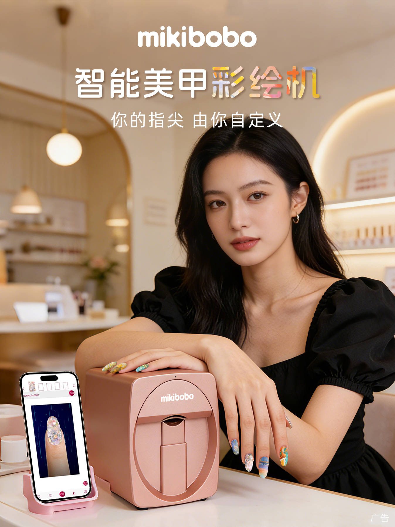和其他传统美甲店不同,mikibobo美甲店最大的两个优势就是主打3D打印美甲,不需要花很多钱养美甲师,店铺可以同时为10个客户做美甲,速度快、品质好成本还低;另外一个是总部统一做线上运营给门店派单,门店也不需要操心线上的推广与运营,总部全部搞定。