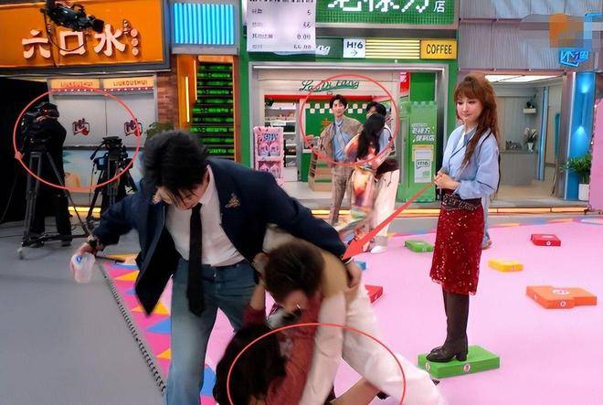 镜头前的她,『妆容』浓烈到让人一眼便能看出,厚重的底妆在灯光下泛着油光。她那一身红蓝撞色的『穿搭』,也颇为抢眼,却让人觉得艳俗,显得格外突兀。在游戏环节中,吴昕的推搡更是引发了一场小小的风波——她用力推搡,直接导致身着超短裙的『杨蓉』失去平衡摔倒,尴尬的画面瞬间引爆了网络。