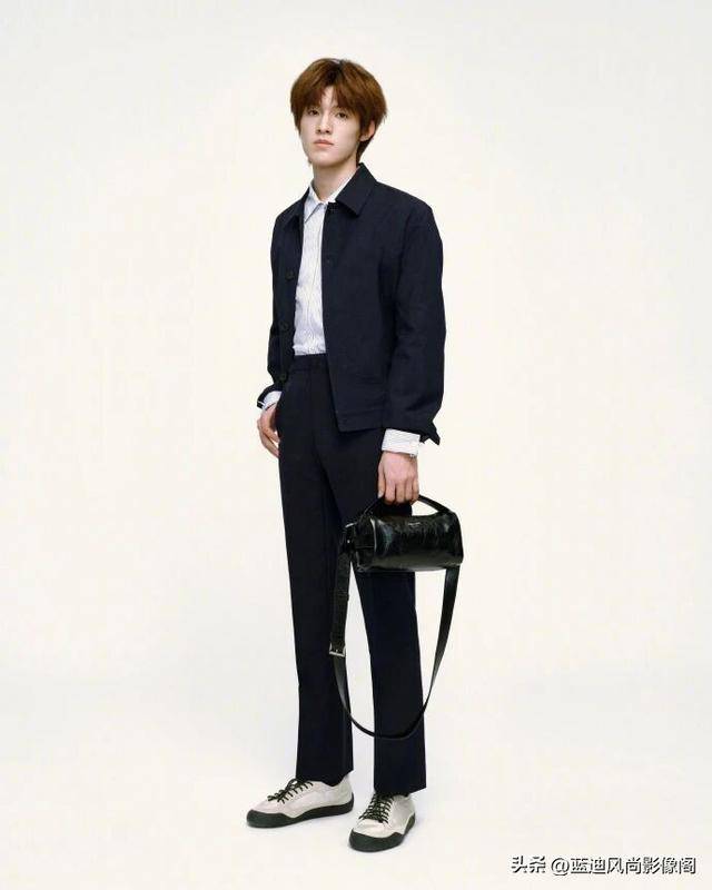 张泽禹的深蓝色西装套装,完美诠释了 PRADA 经典的精英感美学。利落的平驳领西装,用的是品牌标志性的哑光精纺羊毛面料,细腻垂坠不僵硬,H 型廓形不紧绷、不臃肿,自然落肩设计没有刻意垫肩凹宽肩,彻底跳出了 “男团西装必修身” 的固化怪圈,没有把西装穿成刻板的商务款,反而穿出了少年独有的清俊挺拔。搭配一款简约的 PRADA 公文包💼,把品牌的克制高级感,和少年的干净气质完美融合,不端着、不油腻,清俊又文艺。