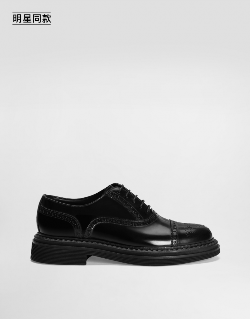 足下风采同样是整体造型的画龙点睛之笔。备受瞩目的『明星』️同款磨面小牛皮系带鞋,展现了品牌在配饰上的匠心。Dolce&Gabbana这款DayClassic鞋履选用质感独特的磨面牛皮革,搭配超轻橡胶鞋底,确保了全天的舒适行走。鞋面上的雕花工艺细节,透露出低调的精致;上蜡鞋带更显质感,标签牛皮革鞋垫则提升了穿着品质。经典的徽标元素巧妙融入橡胶鞋底,在不经意间彰显身份。D&G这双鞋履完美平衡了正式感与休闲感,能够从容应对多种场合。