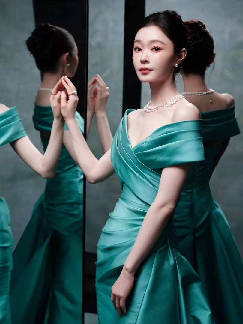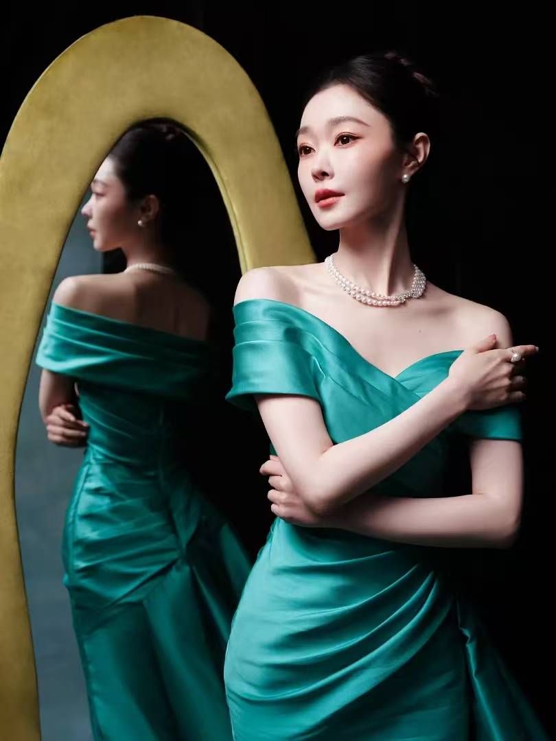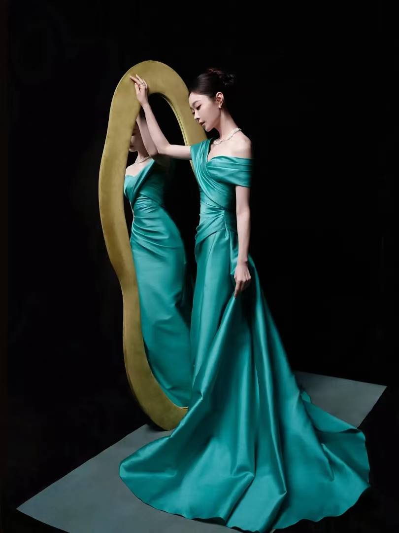 要说内娱谁能把"人间富贵花"和"清冷白月光"两种气质完美融合,『宋轶』这组孔雀蓝礼服写真直接给出答案。这抹独特的蓝绿色穿在她身上,既像深海里的珍珠般温润,又像孔雀开屏时的羽毛般华丽,难怪网友都说"『宋轶』把高定礼服穿出了艺术品的感觉"。先看这条裙子👗的设计就足够惊艳,缎面材质在灯光下泛着流动的光泽,斜肩V领设计露出精致的锁骨和肩颈线,褶皱从腰部延伸到裙摆,像被风吹起的海浪。最绝的是拖尾裙摆,铺开时像一朵盛开的蓝绿色睡莲,走动时又像流动的丝绸,每一步都带着优雅的韵律。『宋轶』把头发高高盘起,露出修长的天鹅颈,配上多层珍珠项链和小巧的珍珠耳坠,复古感直接拉满。她站在镜子前的画面简直像老上海月份牌里的美人,单手轻抚肩头,眼神清冷又带着一丝妩媚。镜面反射出她的侧影,高挺的鼻梁和清晰的下颌线,连侧脸都美得像精心雕刻的艺术品。另一个角度里她微微低头,指尖轻触镜面,珍珠戒指💍在灯光下闪着细碎的光,这氛围感谁看了不迷糊啊!最让人惊艳的是她的皮肤,白到和珍珠项链融为一体,孔雀蓝的礼服衬得她像刚从贝壳里诞生的珍珠公主。都说『宋轶』是"行走的反光板",这次算是彻底见识到了,连裙摆的阴影都透着冷白皮的光泽。她的眼神也特别有戏,有时像含着一汪秋水般温柔,有时又带着点疏离感,把"易碎感"和"贵气感"平衡得刚刚好。这套造型把『宋轶』的气质优势发挥到极致,既有江南女子的温婉,又有民国名伶的风情。特别是她扶着金色圆环道具的那张,礼服拖尾在地上铺开,像孔雀开屏时的华美尾羽,背后的镜子映出她的身影,虚实交错间像一幅流动的油画。这种古典与现代结合的美感,大概就是传说中的"氛围感天花板"吧!看完这组照片终于明白为什么『宋轶』总能把复古风驾驭得这么到位,她不是刻意模仿旧时代的美,而是把那种优雅刻进了骨子里。孔雀蓝礼服本就挑人,换个人穿可能会显得老气,但在她身上却像量身定做般和谐。这种"穿什么都像高定"的气质,大概就是天生的衣架子吧!