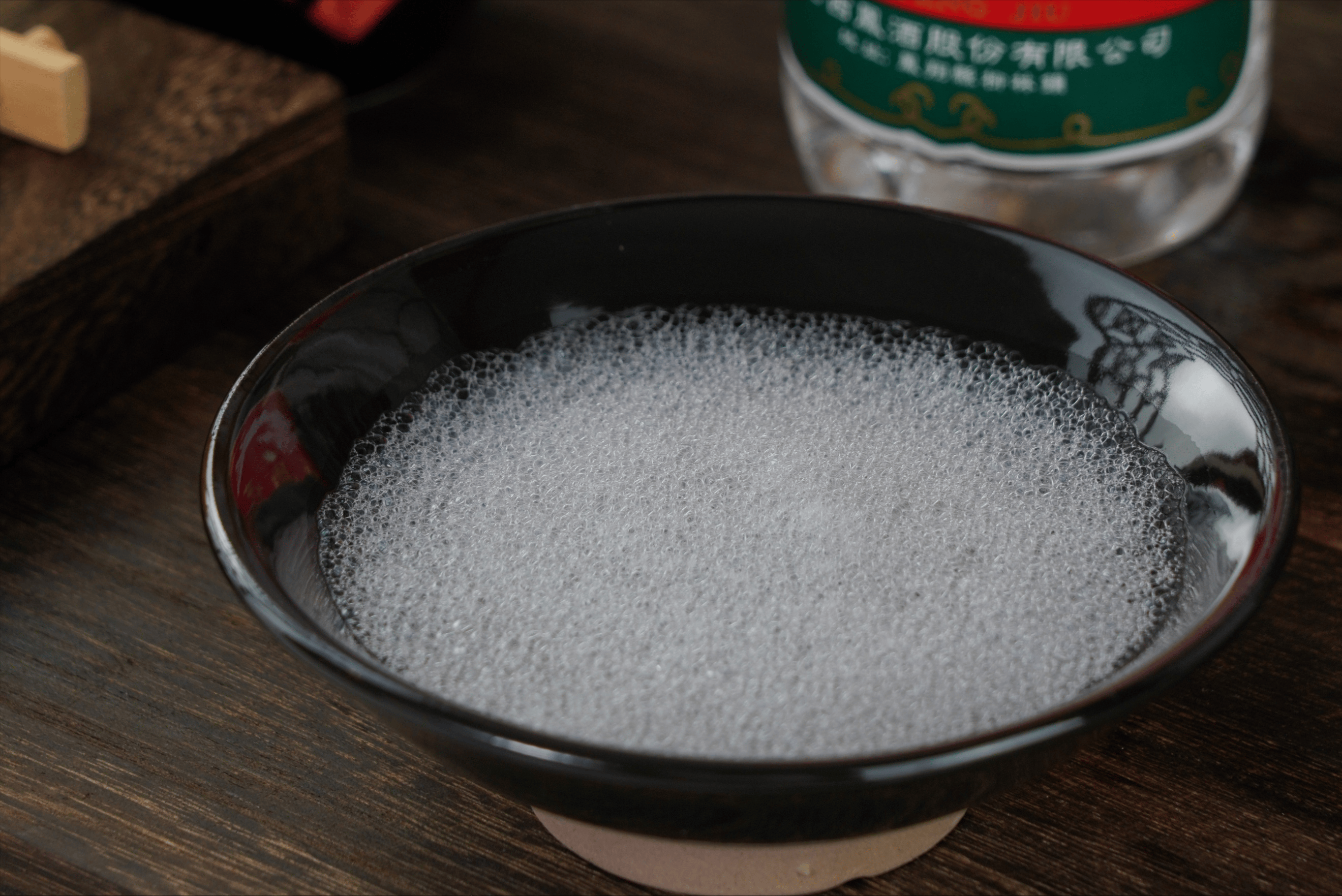 - 水花 / 鱼眼花:酒精度低(<50°),泡沫细碎、散得快,多为酒尾,风味寡淡。
