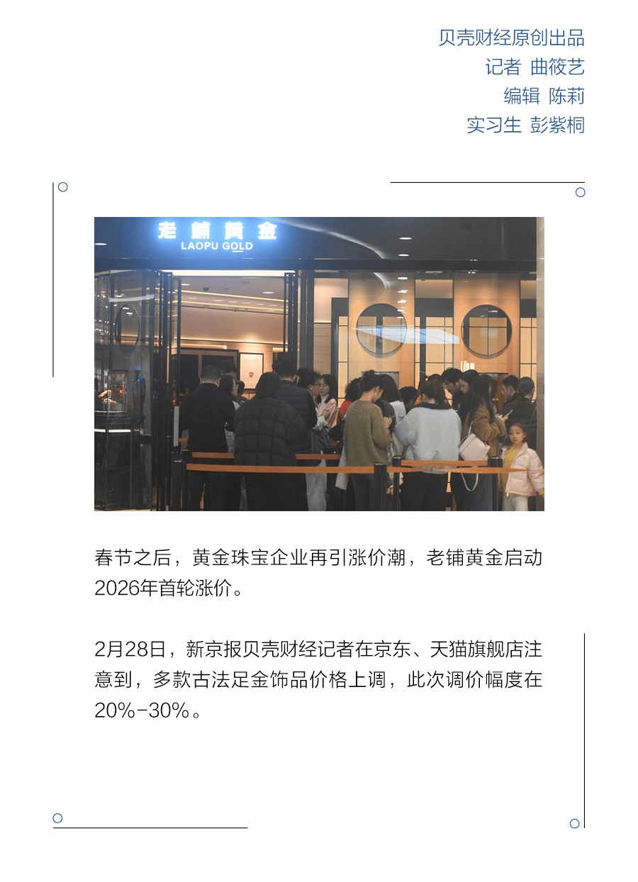 春节之后,黄金珠宝企业再引涨价潮,老铺黄金启动2026年首轮涨价。