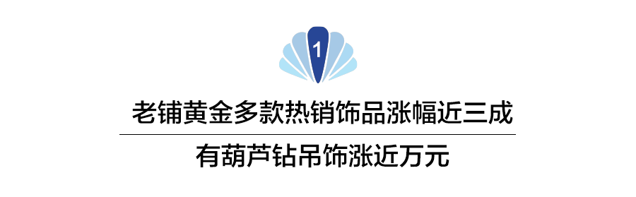 天猫旗舰店数据显示,一款18.2克的葫芦钻吊饰,由33624元,涨至43380元,涨幅约29%,该款首饰去年8月涨幅约12.5%;10月涨幅约22%。