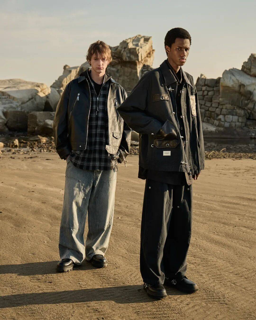 本季通过材质与传统的交融,呈现颓废风皮革、棋盘格拼接、盆景刺绣丹宁及刺子绣工艺等多元设计。