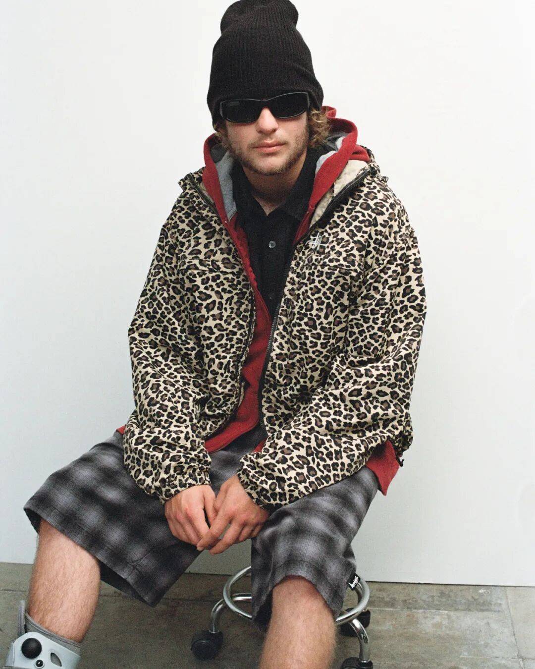 本季融合扎染、豹纹、蛇纹及荧光元素,为经典卫衣、夹克、T 恤、粗支毛衣及飞行服夹克注入新鲜视觉语言。
