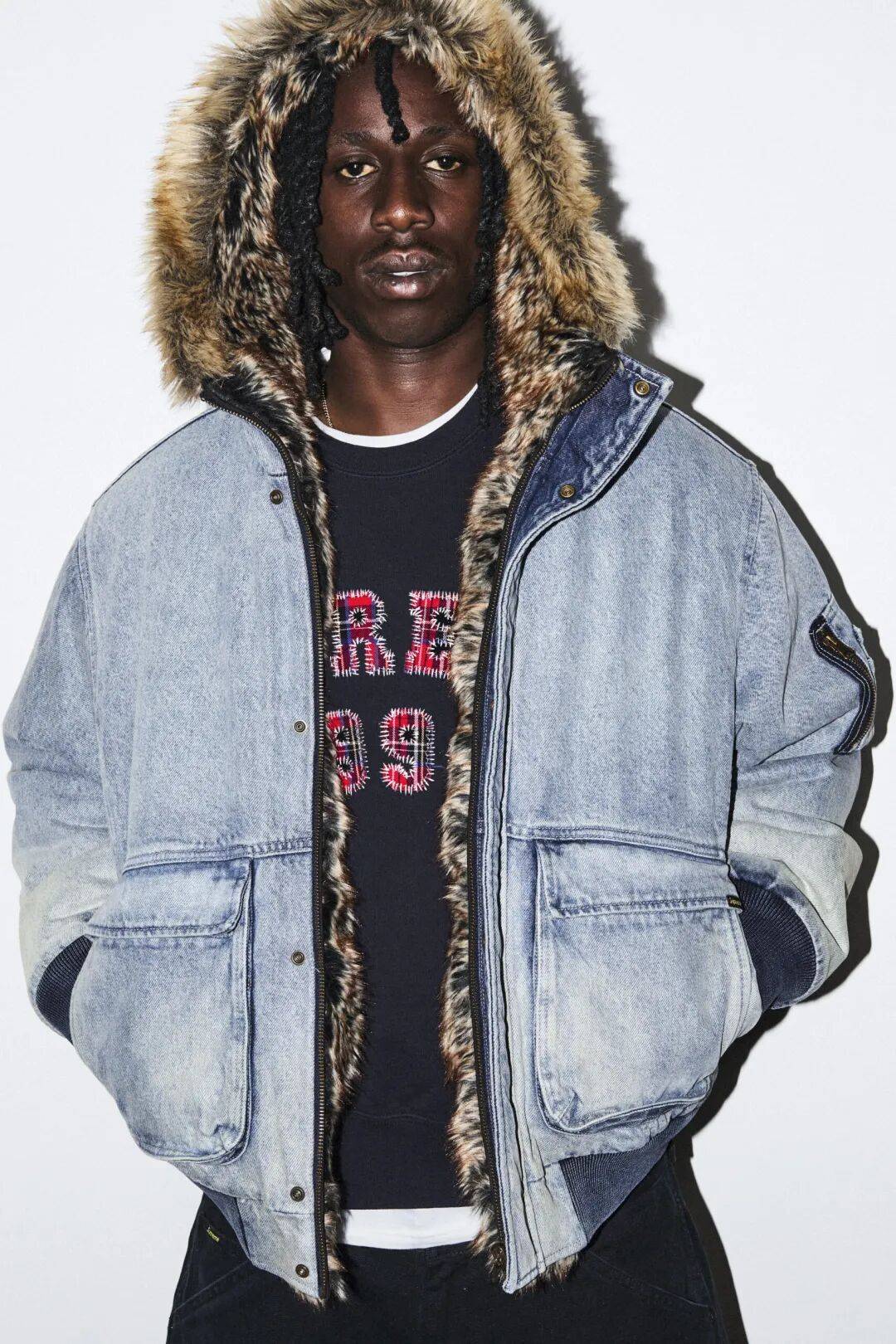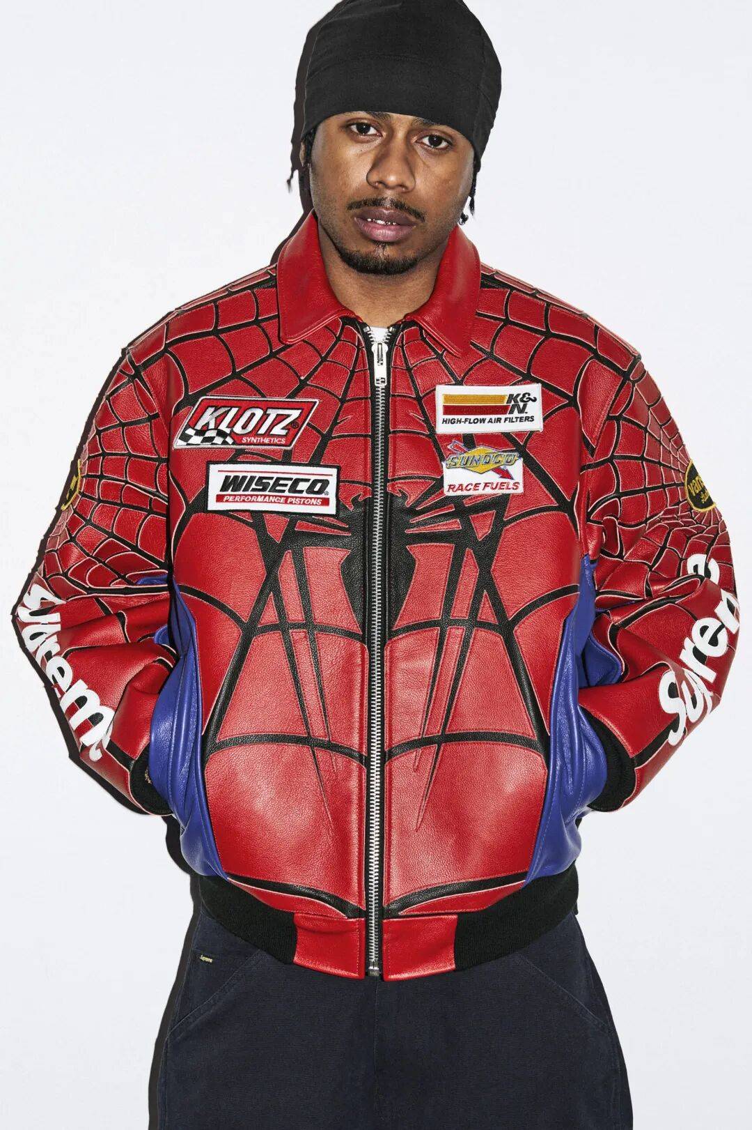 本季延续一贯的大胆与创意,重头戏包括 Schott NYC 皮革大衣和亮面羽绒服、与 Vanson 合作的蜘蛛侠夹克,Alfredo Martinez、Art Dealer 等艺术家的独特插画增添更多视觉冲击。