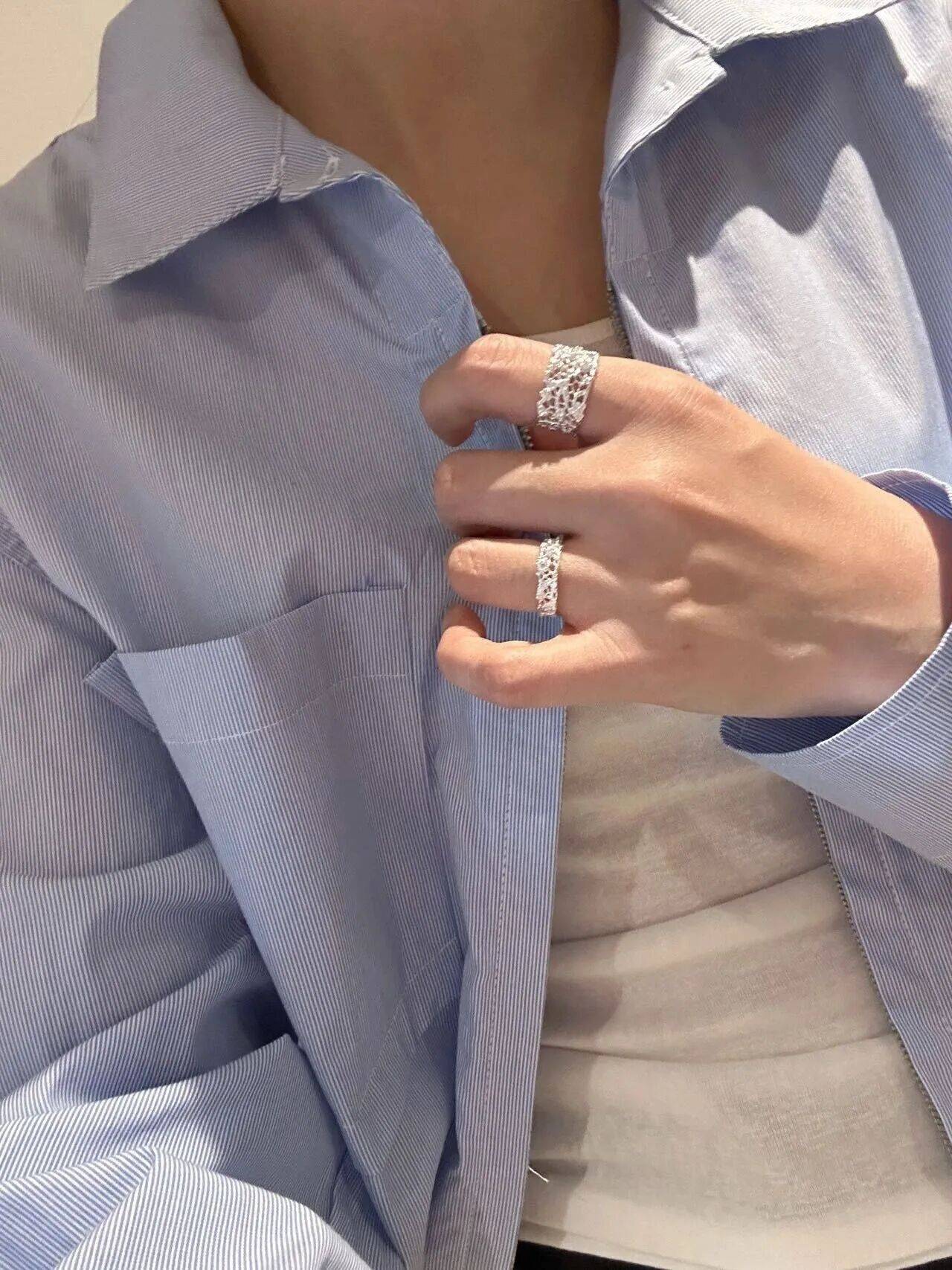 他的造型属于不规则边缘设计,开口式也很方便哪个指头都可以戴,自己diy这点太棒了!