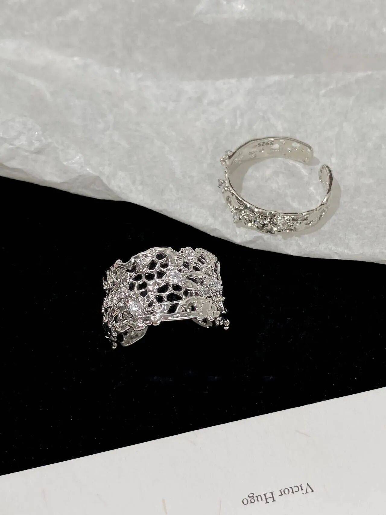 姐妹们都来薅,全部是手工古法镂空工艺做的~宽窄都一个价格,清完下架材质是S925纯银的开口戒哦!