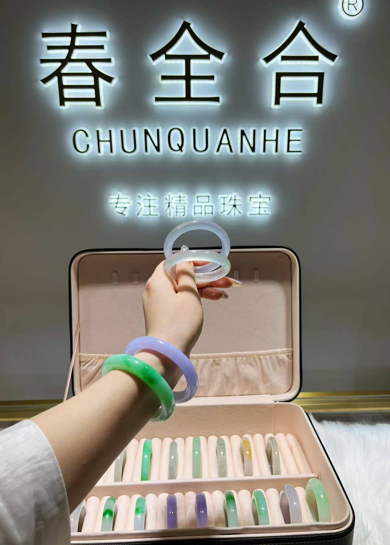 春全合2012年开店,至今14年,专注翡翠,只做天然A货。店内常年备货近百条手镯,以种水手镯为主,白月光、冰晴底、飘花、白底青等款式齐全。圈口覆盖51-60,其中51-54小圈口数量充足,专为小手人群准备。