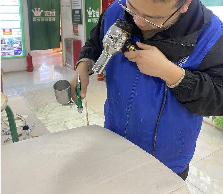 家具漆面维修培训涵盖水性漆与油性漆两大体系。针对油性漆面维修,学校独创“无痕修复法”,通过精准调色、分层喷涂、高温固化等工艺,使修复后的漆面与原家具浑然一体,修复痕迹几乎不可见。该技术已申请**专利,成为行业内的标杆。