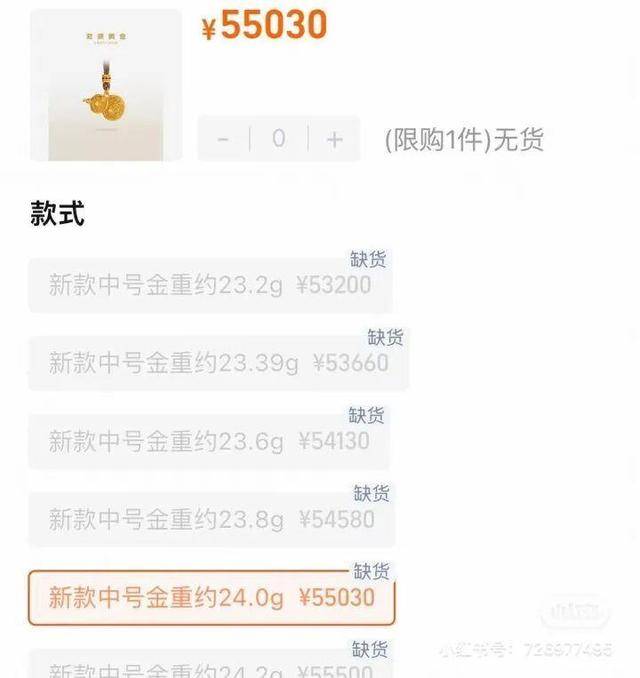 “本来想看一下早上调价幅度,如果幅度不大就退款。”昨晚8点,老铺黄金在调价前最后一天最后一轮线上补货上架,除了个别克价高的点钻类饰品,大部分饰品包括摆件被抢购一空。祝小姐在零点时捡漏了一个紫色珐琅葫芦吊坠,原价57800元,9折后售价52019.95元。