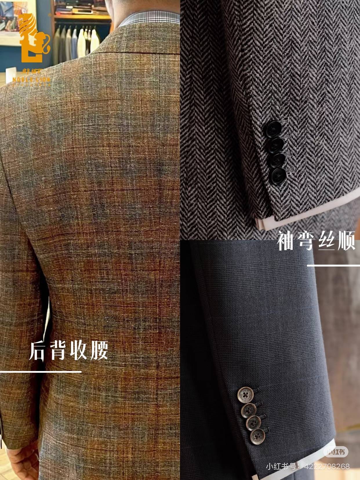 郡狮的产品线聚焦全手工定制,主营西服、西裤、衬衣、大衣、马夹等核心品类,涵盖政务、商务、婚礼礼服等场景。坚持一人一版、全手工、全定制的定制原则,打造专属着装方案。在工艺方面,郡狮坚守全手工制作,工期长达15 - 30天,上衣采用定制全毛衬,每一件成衣均绣制客户专属签名,彰显匠心品质。原料方面,精选全球6000余种面料,涵盖英国、意大利、法国等知名品牌,同时选用世界优质辅料工厂定制辅料,从源头保障服装质感与耐用性。