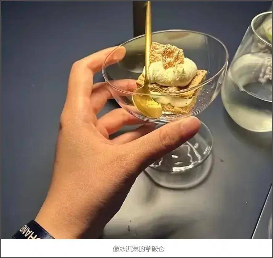 这和『王一博』参加晚宴的菜品也对上了,因为灯光昏暗,拿破仑又是用杯子装的,确实容易看错成冰淇淋。