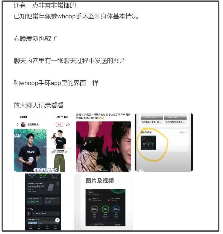 还有几个细节被网友认为最锤,一是曝光的录屏里有一个运动手环APP的界面,和『王一博』的运动手环是同款。粉丝还特地科普过,这个手环有多么特殊,又是要订阅又是偏向专业运动检测的,能随时监测身体健康,很像小情侣之间互相监督的把戏。