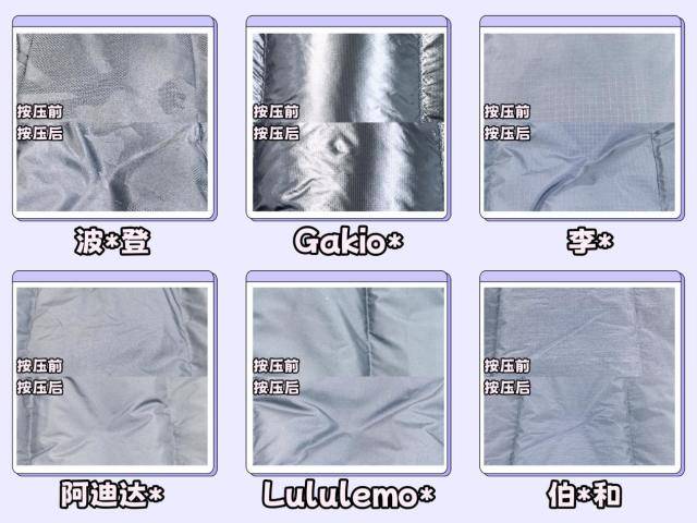③其余品牌揉搓后明显有绒毛钻出,甚至在局部还可能鼓包,长期穿着容易流失羽绒,保暖性能下降。