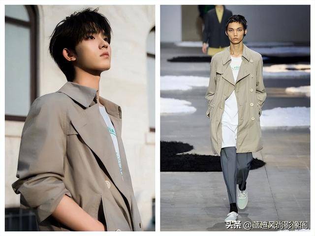 张泽禹的卡其色休闲西装,把 PRADA 的日常高级感玩到了极致。利落的平驳领设计,用的是略带肌理的棉混纺面料,既有正装的挺括,又不失休闲的松弛,H 型廓形不紧绷、不臃肿,自然落肩设计没有刻意垫肩凹宽肩,彻底跳出了 “男团西装必修身” 的固化怪圈,穿出了少年独有的清俊挺拔。内搭的白色高领『针织衫』,用软糯的面料中和了西装的冷硬,添了几分温柔暖意,把他身上干净又坚定的少年感完美贴合。