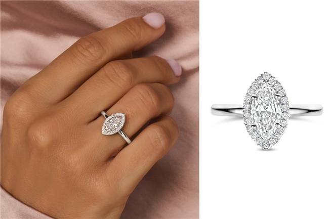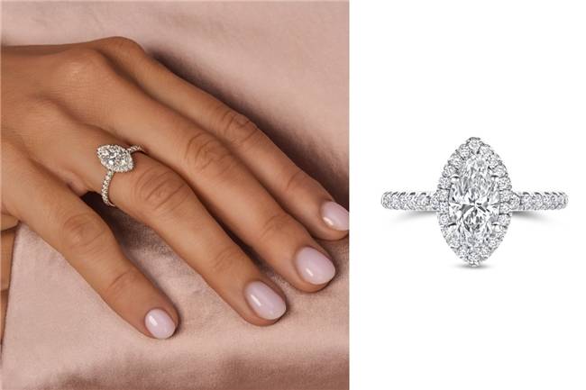 围镶设计进一步强化马眼形钻石的轮廓表达。