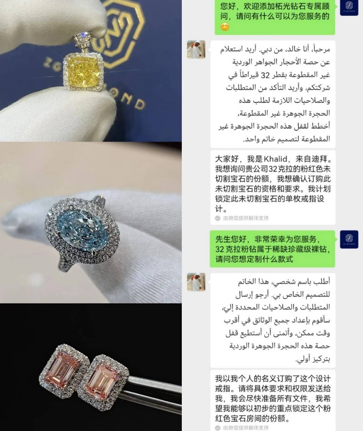 河南本土高定品牌柘光也曾透露,自去年11月开放5-32克拉彩钻全球认购后,每天收到超过200封海外邮件,其中不少来自沙特地区。中东某王室团队,甚至计划定制32克拉级粉钻。
